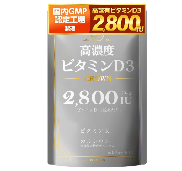 🌞 【흡수율의 차이로 선택하는 비타민 D】비타민 D는, 버섯류에 포함되는 비타민 D2, 어패류에 포함되는 비타민 D3의 2종류가 있습니다. 「고농도 비타민 D3 CROWN」은 체내에서의 흡수 효율을 고집해, 보다 부드럽게 전신에 걸칠 수 있도록 비타민 D3만을 채용하고 있습니다.