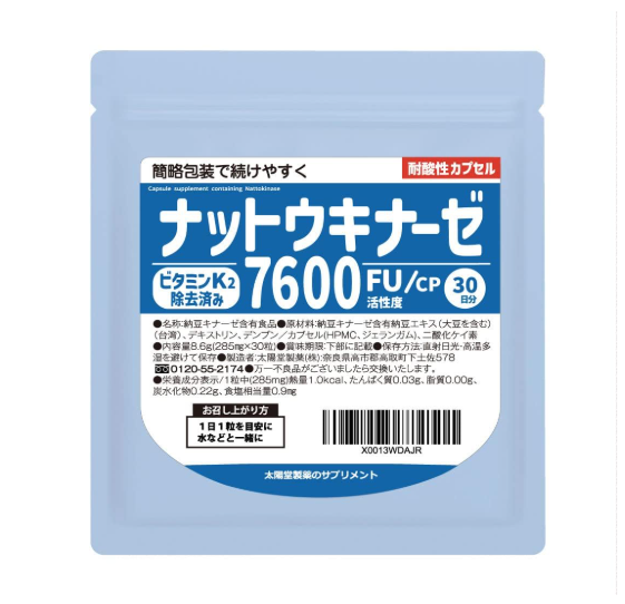 1캡슐에 7600FU의 활성도를 가진 낫토 추출물을 봉입했습니다. 내산성 캡슐을 사용하여, 확실히 지켜서 전달할 수 있습니다. 비타민 K2는 제거된 원료를 사용하고 있습니다. 창업 메이지 8년의 태양도 제약이 전해드립니다.