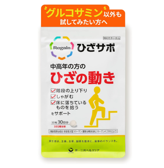 UC-Ⅱ 유씨투의 주성분인 '비변성Ⅱ형 콜라겐'이, 계단을 오르내리는 등, 중장년층의 무릎 움직임을 도와드립니다! 【기능성 표시 식품(신고번호 J400 리게인 무릎 사포b)】〈신고 표시〉본 제품에는 비변성Ⅱ형 콜라겐(효소분해 수용화 콜라겐 펩타이드로)이 포함되어 있습니다. 비변성Ⅱ형 콜라겐(효소분해 수용화 콜라겐 펩타이드로서)은 지속적으로 섭취함으로써 무릎관절의 유연성, 가동성을 지원하는 것, 중장년층의 일상생활에서 무릎의 움직임(계단의 오르내림, 쪼그리고 앉음, 바닥에 떨어져 있는 것을 줍음)을 지원하는 것, 또 운동습관이 있는 분의 일상생활에서의 원활한 보행을 지원하고 무릎의 위화감, 무릎을 비틀거나 돌릴 때의 위화감을 경감하는 것이 보고되었습니다. 〇식생활은 주식, 주채, 반찬을 기본으로 식사의 균형을. 〇본 제품은 특정 보건용 식품과 달리 소비자청 장관의 개별 심사를 받은 것이 아닙니다. 〇본 제품은 질병의 진단, 치료, 예방을 목적으로 한 것은 아닙니다.