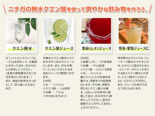 무수 구연산 1kg 식품 첨가물 규격 순도99.5% 이상 유전자 조교환 원료 불사용 [01] NICHIGA(니치가)