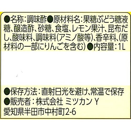 -. Feature : 내용량:1000ml / 원재료:과당 포도당액당,양조초,설탕,식염,레몬 과즙,다시마 이고,신맛료,조미료(아미노산등)고, 향신료,(원재료의 일부에 사과를 포함한다) / 상품 사이즈(높이x(길이)깊이x폭):274mmx82mmx82mm