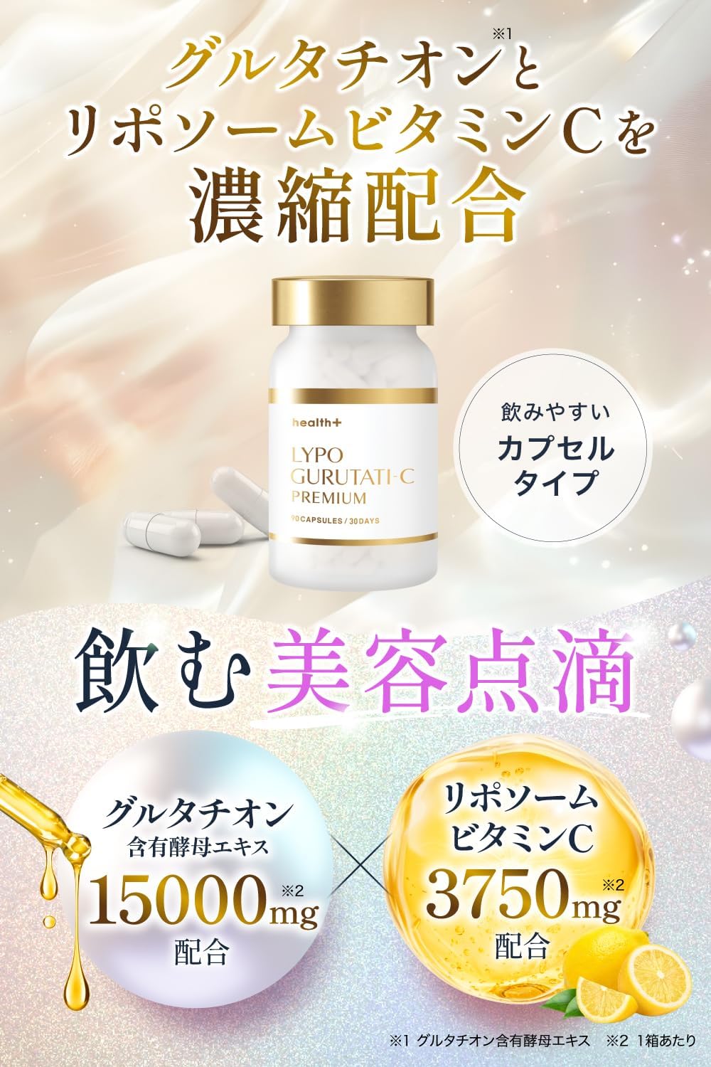 ✅ [리포좀 비타민 C×글루타티온 ※으로 백옥 처방] 리포좀 비타민 C도 1봉지에 3750mg의 고배합. 리포좀 비타민 C × 글루타치온의 백옥 처방 ※ 글루타치온 함유 효모 추출물
