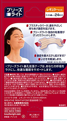 브리즈 라이트 엑스트라 레귤러 피부색 콧구멍 확장 테이프 숙면・코고는 소리 경감 24매입 (사토 제약)