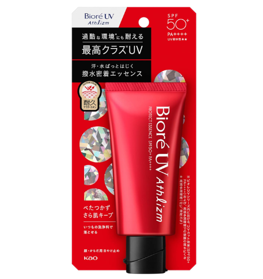 땀 · 물이 흘러 끈적거리지 않고, 보송보송 피부 유지. 잘 펴지는 에센스가 피부에 밀착되어, 보송보송하게! 40℃·습도 75%의 가혹한 환경에도 견디는 최고 수준 ※UV【※비오레 UV시리즈 내 자외선 차단 효과 (SPF50+PA+++) 및 고온 다습 환경에서 도막이 잘 떨어지지 않음】 땀, 땀, 긁힘에 강하고 잘 지워지지 않는 터프 부스트 Tech 사용. 메이크업 베이스로도 사용할 수 있다. 평소와 같은 세정료로 지울 수 있다. 화이트 플로럴 향