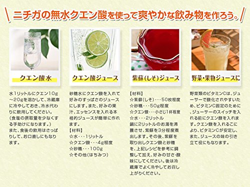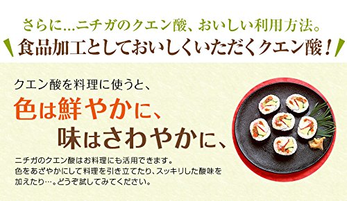 - 보증 순도:식품 첨가물 규격의 99.5%이상의 거의 순수한 구연산입니다.