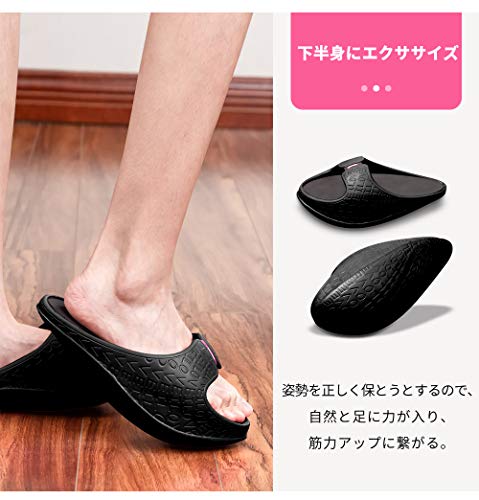실내 슬리퍼 밸런스 샌들 하반신에 엑서사이즈 신는 것 뿐(만,만큼)으로 퍼팩트의 스타루를 인기가 있는 남녀 겸용 블랙 M(24-25cm)