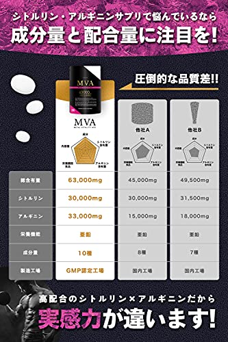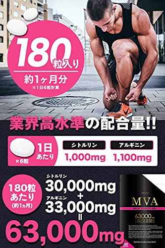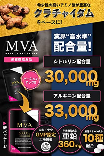 아르기닌 × 시토루린 63,000mg배합 180알 MVA 아르기닌 33,000mg 시토루린 30,000mg 구라차이다무 (흑생강) 아연 서플리(supplement) 영양 기능 식품