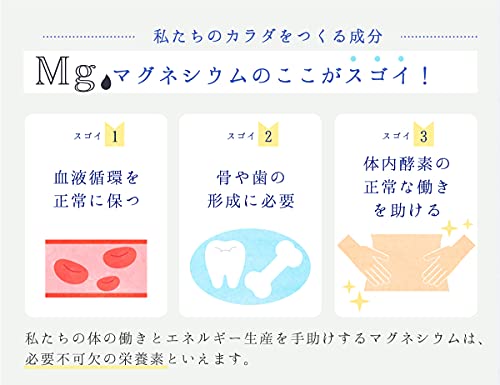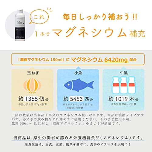 - 주목의 미네랄(마그네슘)가 건강한 몸을 서포트! 1일의 마그네슘 부족량을 스마트로 보충하는 영양 기능 식품! 해어 심층수100%사용 식품 첨가물 불사용 「농축 마그네슘」서는,부족하게 쉽상인 마그네슘을 간편하게 보급에 옵니다.수나 마실 것500ml~1L에 본품5ml(작은 술1배)정도를 기준으로 묽게해 의복 올라 하십시오. 【명칭】 마그네슘 함유 식품 【원재료명】 해수(해어 심층수)(코치현 무로토시) 【내용량】 150ml 【영양 성분 표시(5ml근처)】 열량・단백질・지질・탄수화물0,식염 상당량0.16g고, 마그네슘214mg 【유통기한】 보틀동부에 기재 【보존 방법】 직사일광을 피하고, 상온 보존.개봉 후에요 냉장. 【판매자】 주식회사《아코루》 【제조자】 주식회사 대종 〈사용상의 주의〉 반드시수나 마실 것 등에 묽게해 사용 하십시오.본품은 농축 타입이기 때문에,그대로 음용 할 수 없습니다. 결정물이 부유,침전하는 일이 있지만,품질에는 문제 없습니다.