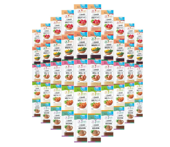 저칼로리이며 염분을 50 % 자른, 자네프의 논오일 드레싱 모둠 세트입니다. 저염 깨, 저염 프렌치, 저염 사우전드, 저염 일본식, 저염 푸른 차조기가 각 10봉지씩 들어 있습니다. 기름을 사용하지 않고 당질 사용법을 연구함으로써 저칼로리 드레싱이 완성되었습니다. 일반적인 드레싱과 비교하면 저염이면서 매우 저칼로리이기 때문에 매우 건강합니다. 개별 포장이므로 도시락이나 외식, 피크닉, 바비큐 등 아웃도어에도 사용하기 좋습니다. 또한, 1회용 타입이므로, 별도의 용기에 옮겨 담지 않아도 쉽게 사용할 수 있습니다. 외부에서도 저염 · 저칼로리 드레싱을 즐길 수 있고, 약간의 양념에도 사용할 수 있습니다. 생채소나 온채소, 해산물 샐러드, 돼지 샤브샤브 등의 취향의 요리에 꼭 사용해 주세요. 염분이 제한되어 있는 분은 물론, 논 오일이므로 다이어트 중이신 분이나 영양 균형을 걱정하시는 분에게 추천합니다.