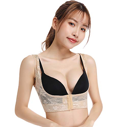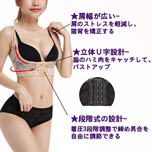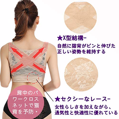 자세 교마사미흉 시이파 바스트 업 보정 속옷 스타일 업 이너 늘어져 방지 새우등 서포트 등줄기 교정 바디시이파 레이디스 레이스 고환기성 화려함 이너 (베이지, XL)