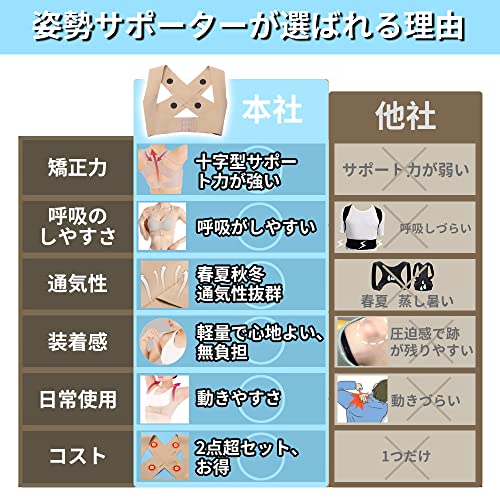 자세 벨트 2점 세트 자세 교정 벨트 새우등 벨트 자세 서포터 등줄기 보정 등 서포트 브래지어 겨드랑이 오름 아퍼져 어려운 환기성 학생 통근 소재 남녀 겸용