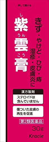 본 제는 자적색의 연고입니다.이색은 성분의《시콘》에 의한 것입니다.