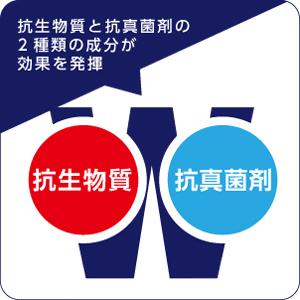 항생제와 항진균제의 2 종류의 성분이 수충균에 뛰어난 효과를 발휘합니다.