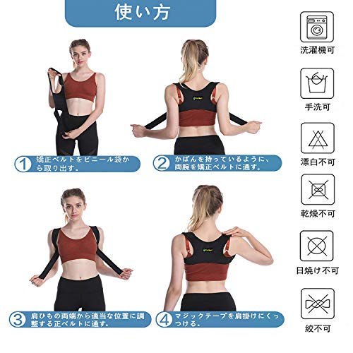 2019년 최신 판새우등 교정 벨트 자세 교정 벨트 새우등 서포터 등줄기 교정 벨트 어깨결림 해소 남녀 겸용 일본어 취급 설명서 포함 와