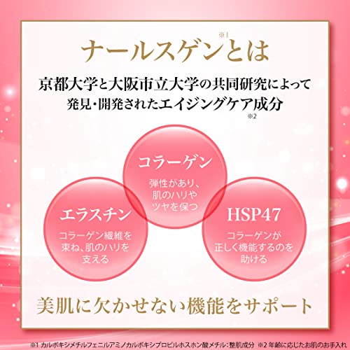 - 【 《나루스겐》 란 】쿄우토대학과 오사카 시립 대학의 공동 연구 로 인해 발견・개발 된 아미노산 유도체「《나루스겐》」 가,각질층의 구석구석까지 침투하고, 해리가 있는,촉촉한,포동포동하게 한 피부에정 네고 있습니다.