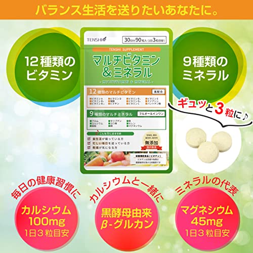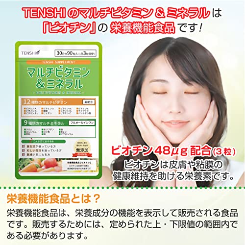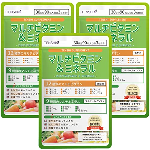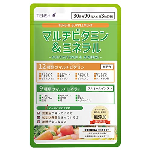 (Amazon한정 브랜드) TENSHI 멀티 비타민 amp; 미네랄 서플리먼트 고배합 풀 all in one 무첨가 국내 제조 영양 기능 식품 비오친 90알입(30일분)