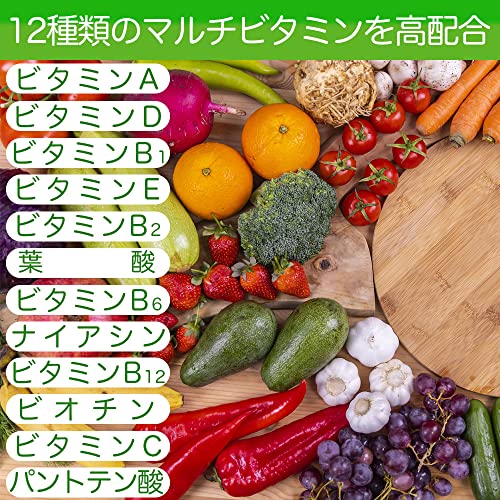 - 【영양 성분 표시】(3 입0.96g근처)/ 에너지:2.53kcal / 단백질:0.06g / 지질:0.03g / 탄수화물:0.51g / 식염 상당량:0.004g / 비타민B1:1.10mg / 비타민B2:1.13mg / 비타민B6:1.13mg / 비타민B12:2.2μg / 나이아신:12.2mg / 판토텐산:6.00mg / 비타민D:5.00μg / 비타민A:495μg / 비타민E:7.80mg / 엽산:200μg / 비타민C:85.0mg / 《비오친》:48.0μg / 칼슘:100mg / 마그네슘:45.0mg / 철:2.50mg / 동:0.200mg / 요소:30.0μg / selen:7.69μg / 아연:2.34mg / 크롬:9.60μg / 숲《부덴》:5.68μg