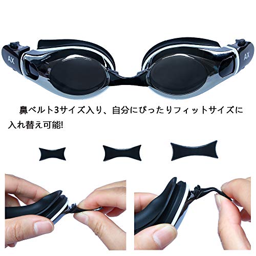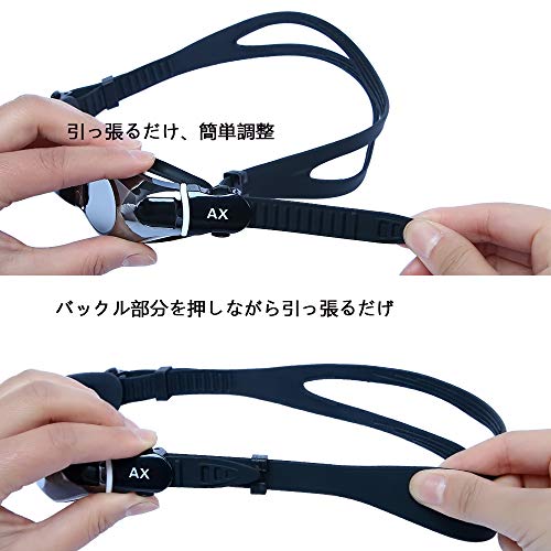 AX 스위밍 고글 수영 고글 스윔 고글 밀러 흐림금지 비벨트 케이스 포함 와 남녀 겸용 프리 사이즈 (블랙)