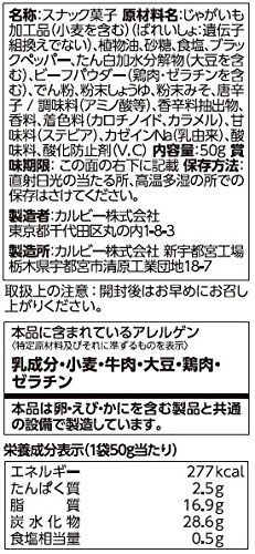 -. Feature : 원재료:감자(유전자조 교환이 아니다)고, 식물성 기름,설탕,식염,블랙 페퍼,단백 가수분해물(대두를 포함한다)고, 비프 파우더(닭고기・젤라틴을 포함한다)고, 나오지 않겠 분,분말 간장,분말 된장,고추 / 조미료(아미노산등)고, 향신료 추출물,향료,착색료(카로 치노 이 드,카라멜)고, 감미료(스테 비어)고, (Kasein)카세인Na(유유래)고, 신맛료,산화 방지제(V.C) / 내용량:50g×12 포 / 칼로리:277kcal / 상품 사이즈(높이x(길이)깊이x폭):15cm×26.1cm×35.4cm