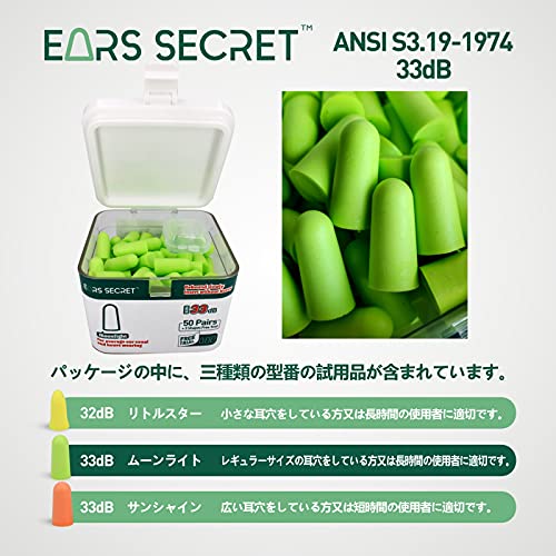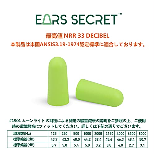 EARS SECRET 이전수면용 방음 봐 보이지 않겠 고기능 NRR33 공부 일 자는 시용 이전최고의 방음치 50+3페어 슬림 사이즈 코고는 소리 단잠 사격 여행이 선 공장 소음 대책 수면 상품 쟈스민 그린