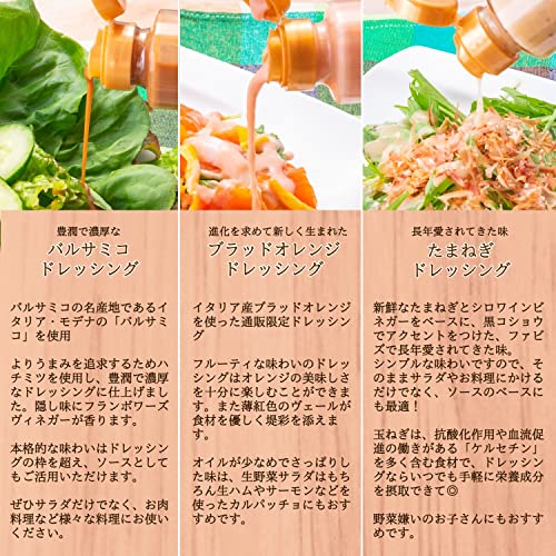- 【오리지날 드레싱3종】옥파:신선한 타마 파와 화이트 와인 식초를 베이스로 흑후추에 액센트를 붙였다, 여러 해 사랑받는 드레싱입니다.부디 먹어 비교해 봐 하십시오.브래드 오렌지:이탈리아산의 브래드 오렌지를 사용해,프루티인 맛보이라고 산뜻한 뒷맛을 실현 했습니다.바르사《미코》:명산지인《모데나》의 바르사《미코》와,벌꿀을 사용한 드레싱.향기가 높고 농후한(풍미)맛이 즐길 수 있습니다.자올리브 오일:제대로 매운 맛을 추출했다, 요리를 조르는(매는) 오일입니다.마늘 오일:건조 마늘을 장시간 차분히 불에 부과해(끼얹어) 정중하게 가는 체로 거르를 했다, 향기높은 황금색의 오일입니다.바질 오일:국산의 플래시 바질 의 향기와 맛을 마음껏 추출한 오일입니다.
