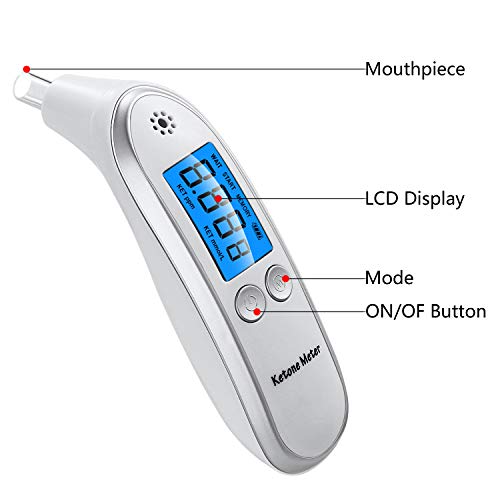 Ketone Meter고, 휴대 식개 톤 호흡 측정기,Ketosis 검지기 측정기 프로의 디지털다루케톤호흡 분석 장치 고, 10마우스 피스를 구비한(갖춘)―타부루케톤부레스메타 (화이트)