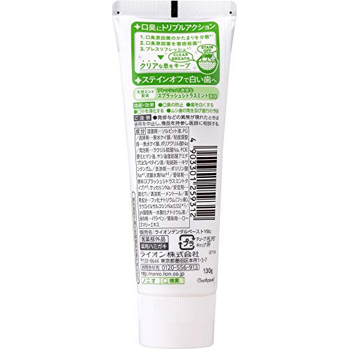 다습 제…솔 비트액,PG/청소 제…무수 규산A/점도 조정 제…무수 규산,폴리 아크릴산Na/발포제…설대 re《루》유산Na고,POE경화 한가《시》유,야자 유지방 산AMI 드 프로 pill 베타 인액/점결제…산탄검(Xanthan Gum)/세제…폴리 인산Na*1,탄산수소Na*1/향기 맛 제…향료(스플래시 시트러스 민트 타입)*3,사카린Na/안정 제…산화Ti/청량제…멘톨/약용 성분…불화 나트륨(불소)고, 설대 러 이《루사루코신》Na(LSS)*2/pH조정 제…수산화 나트륨액/보존 제…파라벤/교맛 제…rosemary 엑기스