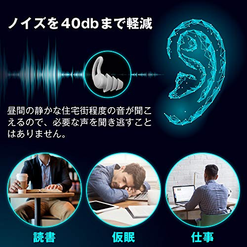 ZAIDEA 이전방음 노이즈 컷 코고는 소리 수면 실리콘 3층・2 층타입 방음치40dB (2페어 세트,흰색 amp;검정)